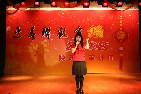 2008年春节前夕,陕西省审计厅举办了一场别开生面的迎春文艺联欢会,干部职工欢聚一堂,迎接新春佳节的到来。联欢会由厅纪检组长、厅机关党委书记陈宗海同志主持,厅党组书记、厅长屈方方同志致辞,他代表厅党组向全厅同志表示新年的祝福,祝愿大家身体健康、工作顺利、阖家幸福、万事如意!由于迎春文艺联欢活动安排的早,干部职工积极响应,并作了认真的准备,8名厅级领导全参加了演出。因而,演出取得了成功,干部职工个个笑逐颜开。联欢会共演出了21个不同类型的文艺节目,有独唱、清唱、合唱、小品、舞蹈等。整台节目历时二个半小时,文艺活动在厅长屈方方领唱的《同一首歌》声中结束。